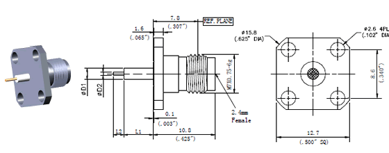 RF Coaxial Connectors Square or Long Flange SMA, 2.92mm, 2.4mm, 1.85mm, N, TNC